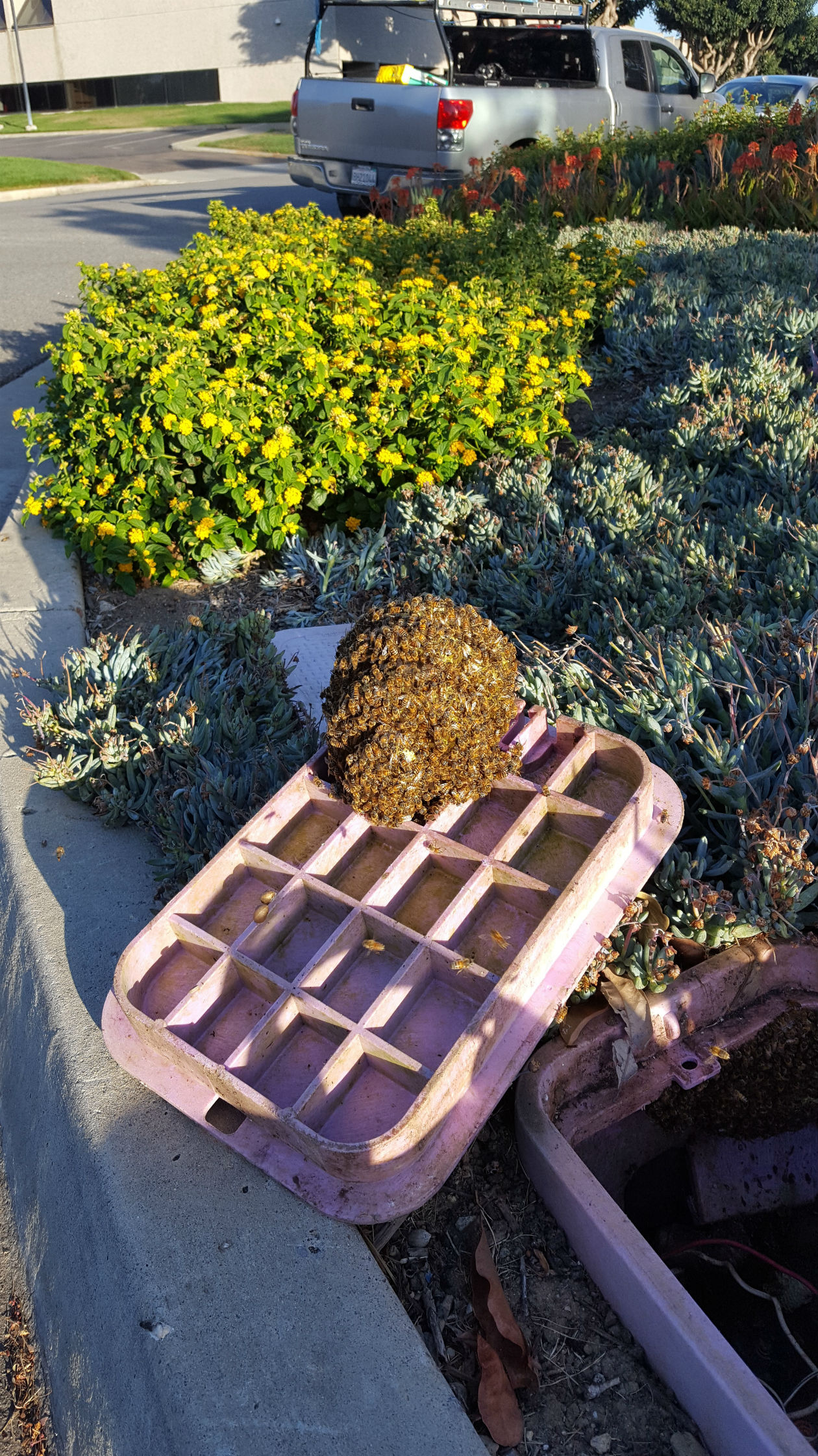 Your Riverside Beekeeper | sprinkler-valve-box-with-bees